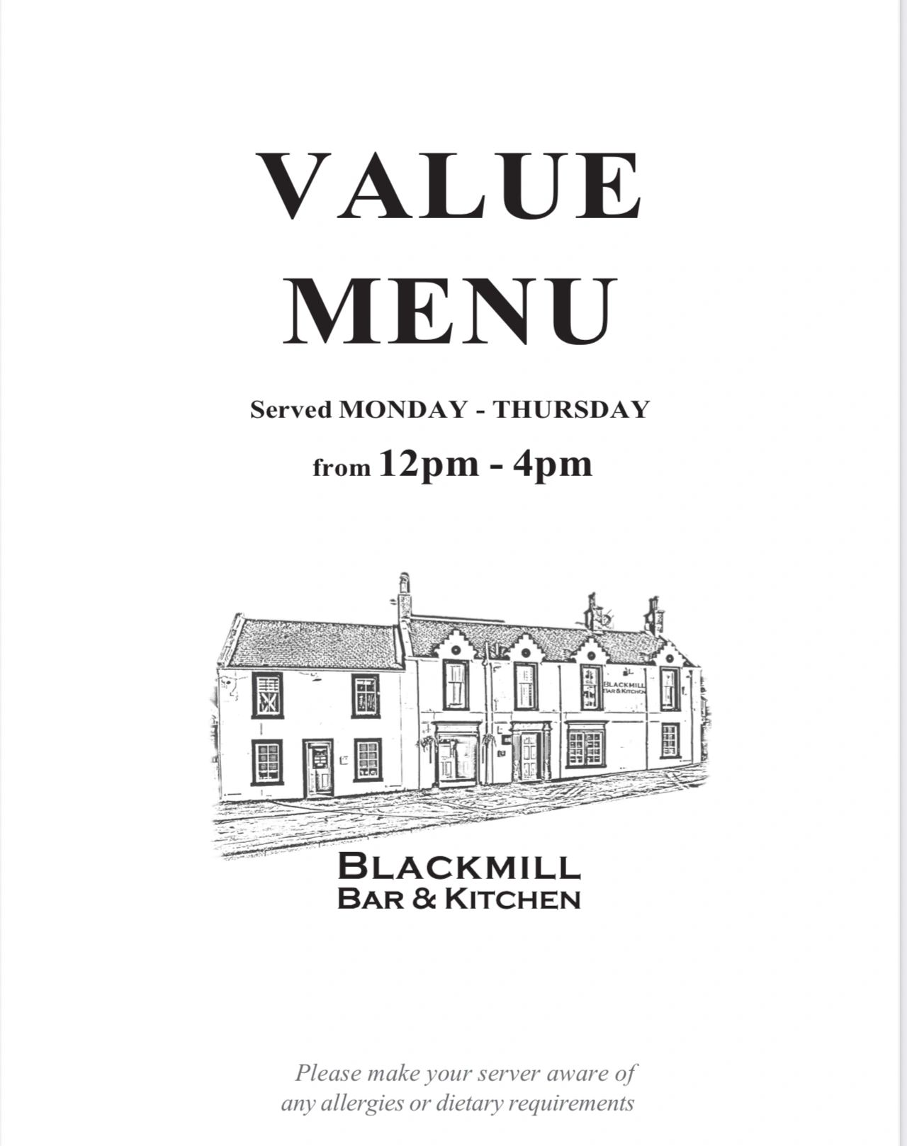 Here is our Main menu & Value menu with daily specials